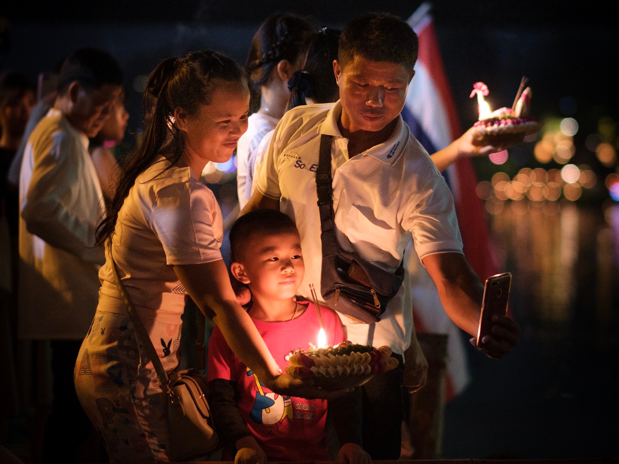 Dieses Mal hat die Polizei durchgegriffen nach dem Chaos gestern und alles abgesperrt. Es gab wieder eine große Parade und quasi Volksfest. Und absolutes Himmelslaternen-Verbot am Fluß. Die Polizei hat ziemlich durchgegriffen – mit denen will man sich nicht anlegen.