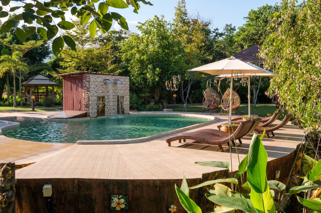 P.S. Wir wohnen in einer kleinen Anlage mit ein paar Bungalows in einem sehr schönem Garten. Hier lässt es sich auch länger aushalten. Sind die geflochtenen Egg Chairs am Pool nicht superschön? Würden glaub ich noch ins Auto passen… 😉