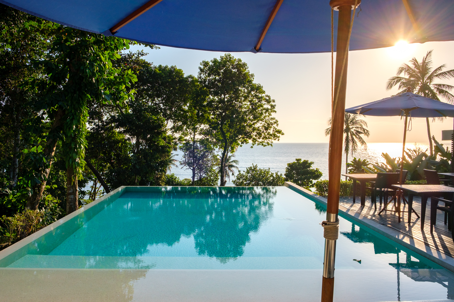 Wir kommen kaum aus dem Nest Sense Resort – so schön ist es hier. Ein Traum! Ich pendle quasi zwischen Infinity Pool und unserem Häuschen und ab und zu ins Magic Garden Restaurant oben an der Straße. Chillen pur! Die Anlage ist klein, nur 18 Einheiten und gehört Thais. Es sind gerade wenig Gäste da, das ist natürlich auch sehr angenehm.