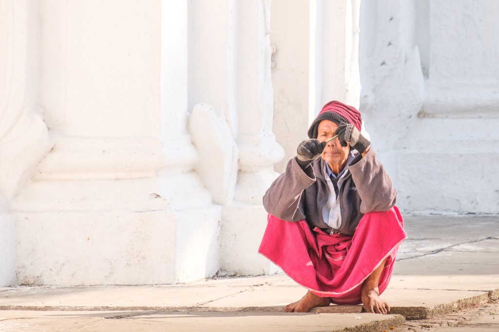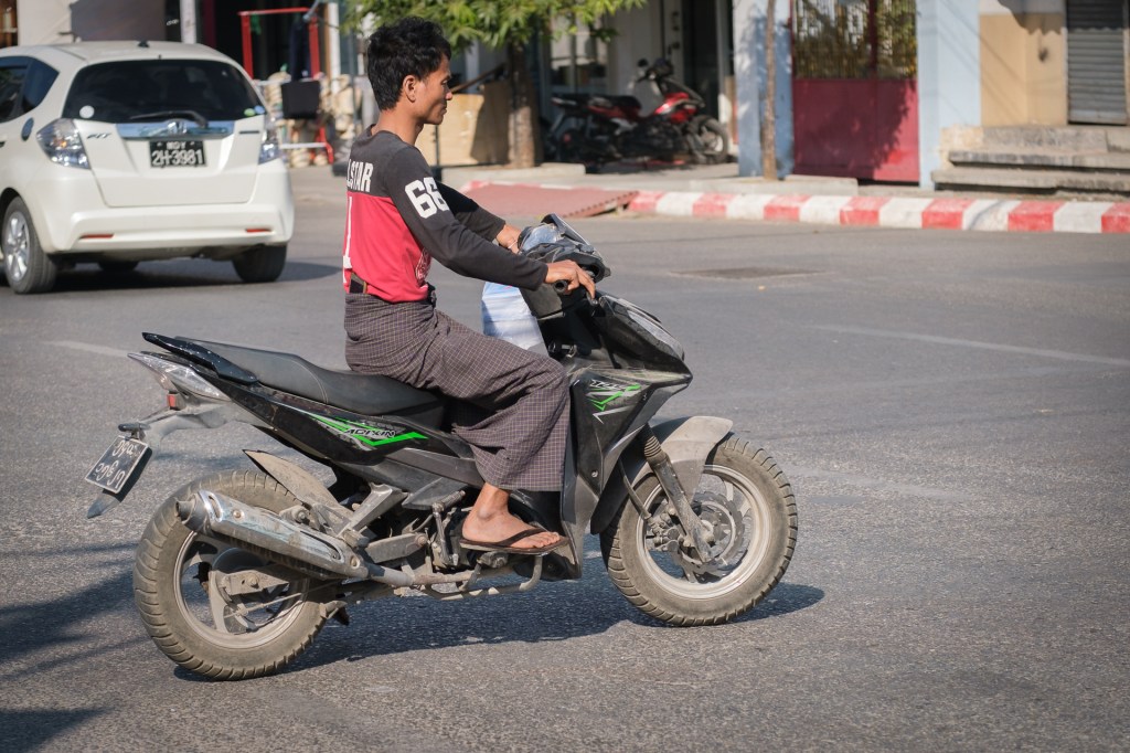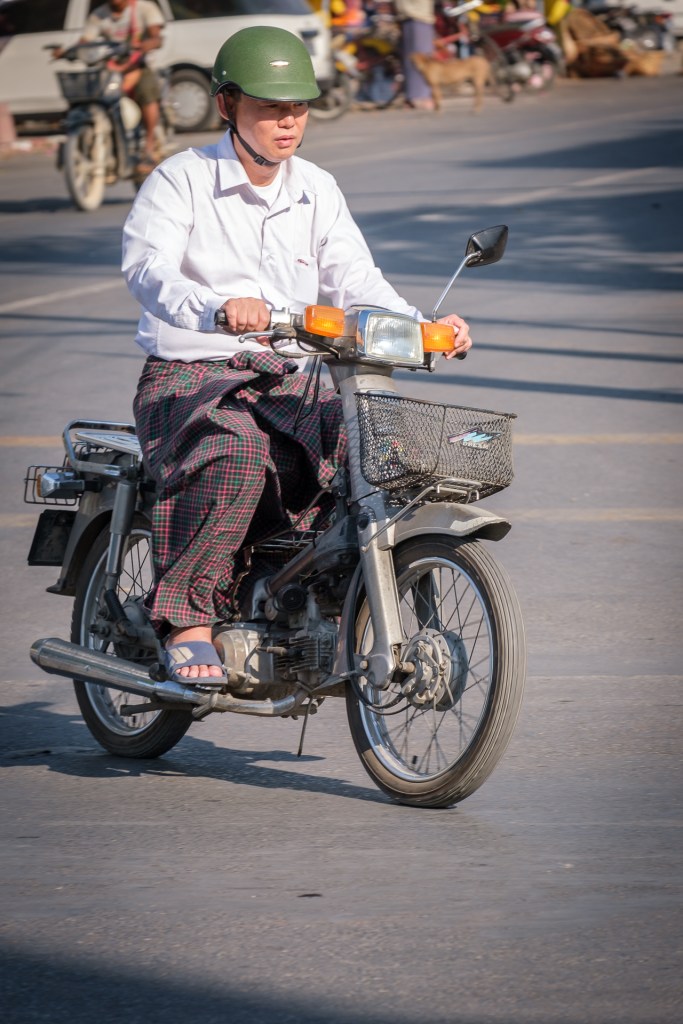 In anderen Ländern sieht man das auch, z.B. in Bali. Aber da nur, wenn eine Zeremonie stattfindet, weniger im Alltag. Hier trägt man Longyi überall und jeden Tag. Frauen sowieso und Männer in der Regel auch. Einfach viele – Taxifahrer, Busfahrer, im Restaurant, man sieht ihn überall. Natürlich auch Jeans und T-Shirts, klar, aber eben sehr viele tragen Longyi. Toll!