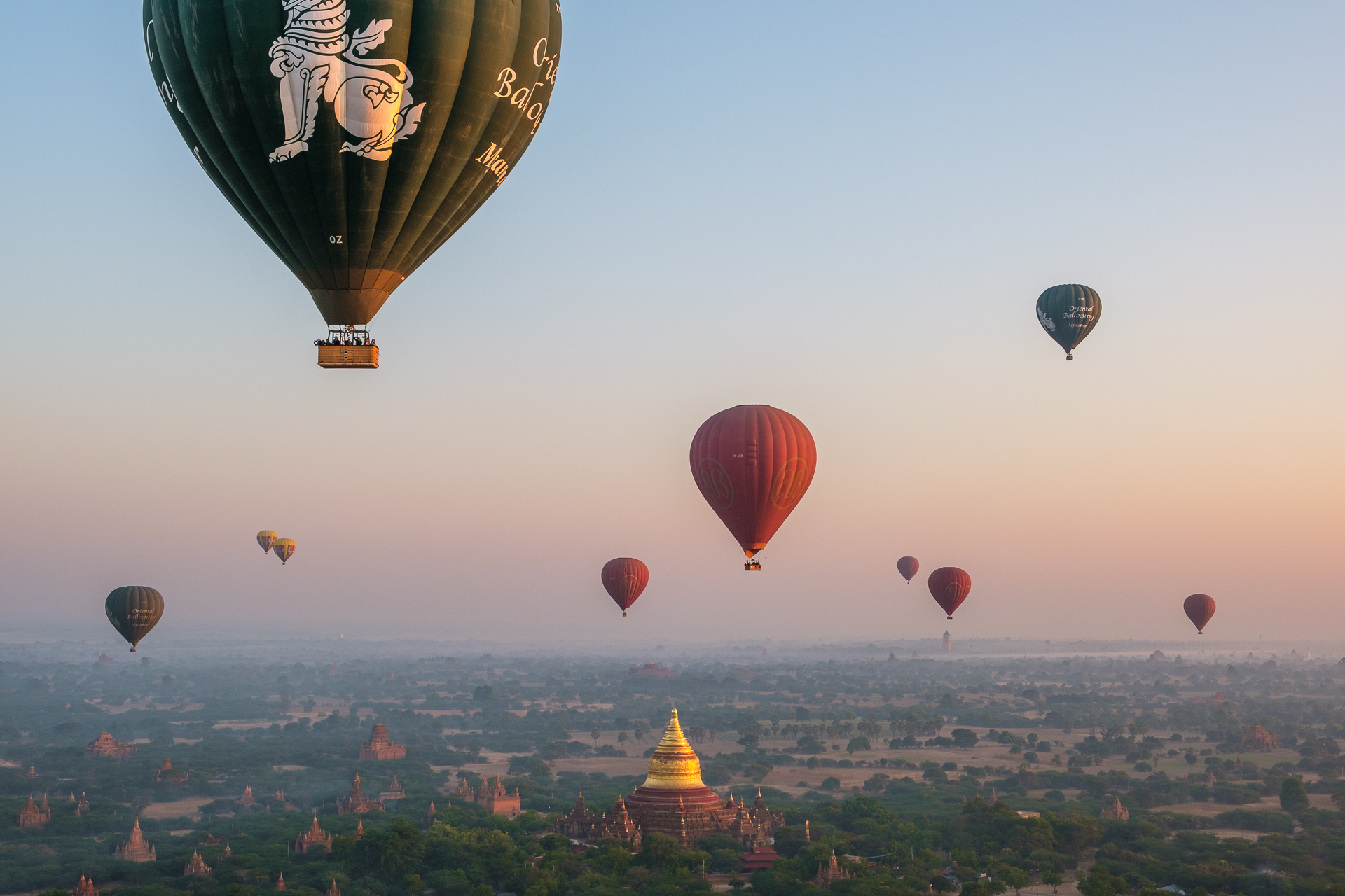 Shaun hat auch das Kunststück fertig gebracht und ist genau über die Dhammayzika Pagode mit der goldenen Spitze geflogen. Wir waren geflasht!