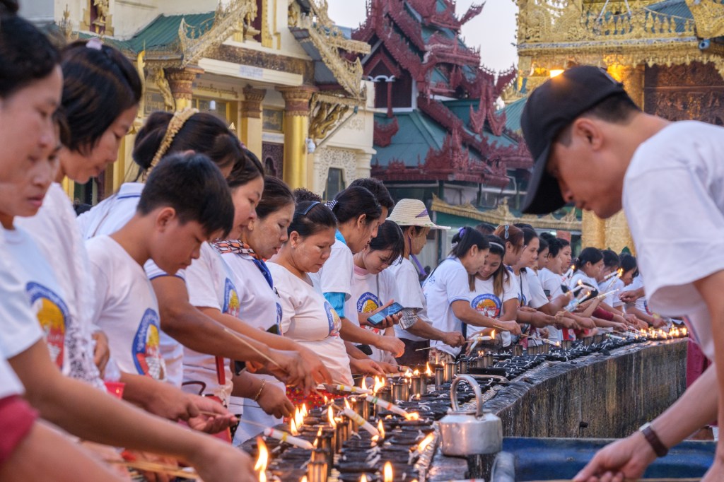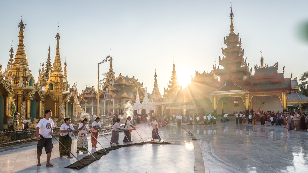 Es gibt natürlich auch tolle Ecken hier. Die Shwedagon Pagode ist natürlich das Highlight in Yangon – an dieser Pagode waren wir am Heiligabend. Die Pagode ist RIESIG, 98m hoch und komplett mit Blattgold überzogen, viele kleine Pagoden dabei und unzählige Buddhas. Das ist ein bedeutender Wallfahrts- und Pilgerort, es waren auch Gruppen hier, die sich für Dienste angemeldet hatten. Dienste wie z.B. den Boden rund um die Pagode kehren oder wischen und dann im Gegenzug die vielen Lichter anzuzünden. Eine tolle Stimmung für Heiligabend!