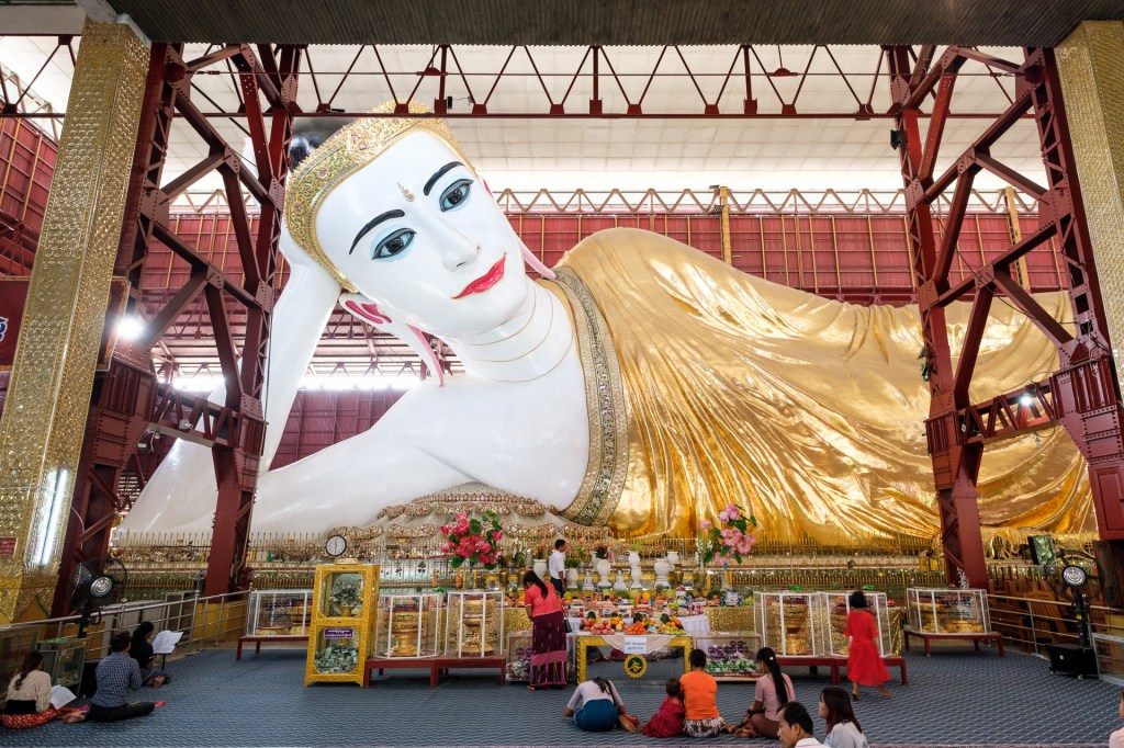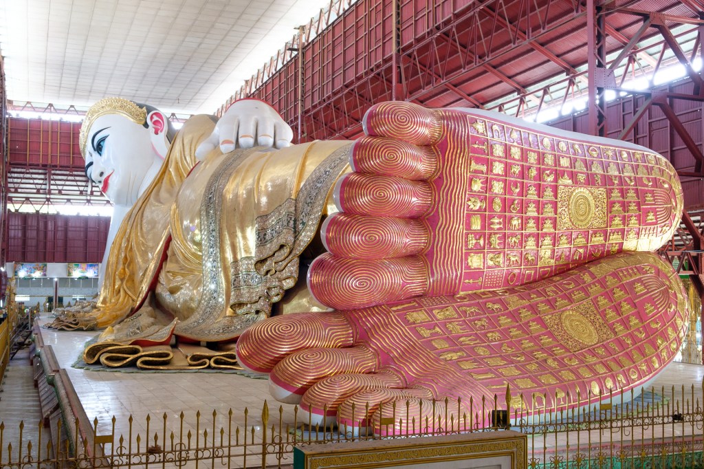 Am zweiten Tag fahren wir zum Chaukhtatgyi Tempel mit dem liegenden Buddha