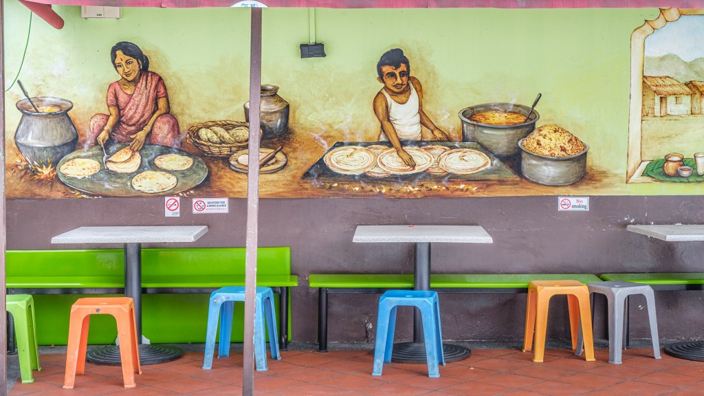 Wir waren in Little India – der Bezirk heißt in Singapur tatsächlich so – und es ist wirklich bunt. Bunte Häuser, Frauen in bunten Saris – auf der Haut leuchten kommen die Farben so richtig zur Geltung. Instagramer treffen sich alle am bunten Haus hier.