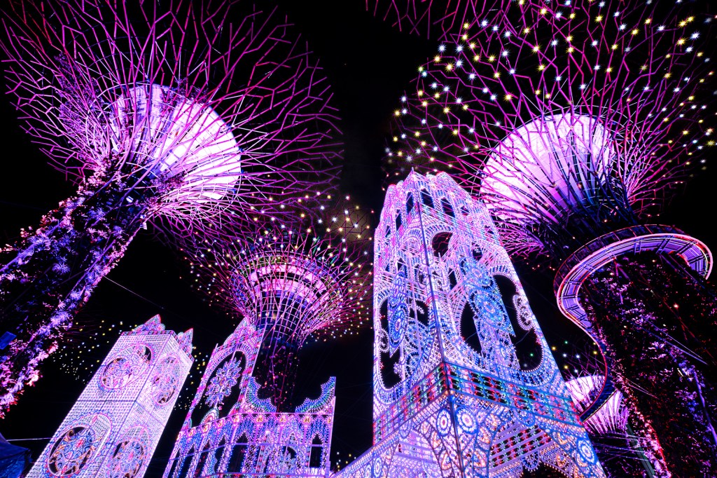 Leider war noch ‚Weihnachtsbeleuchtung‘ da – kitschige Ornamente in LED Leuchtfarben, das war nicht so unser Geschmack. Aber die Supertrees und die Gärten – genial.