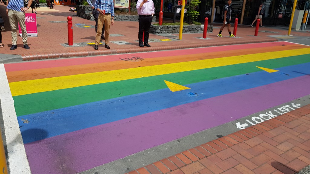 An der Cuba Street ist der einzige Zebrastreifen in Regenbogenfarben, den ich kenne…