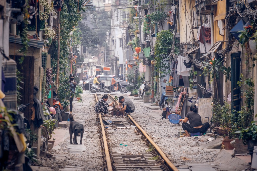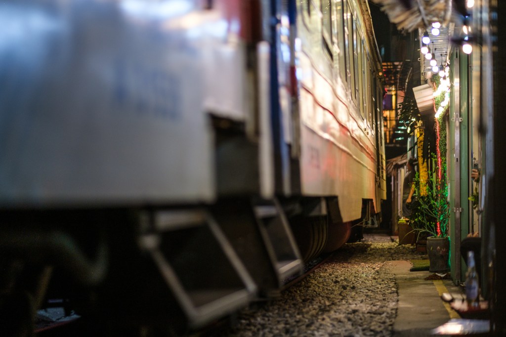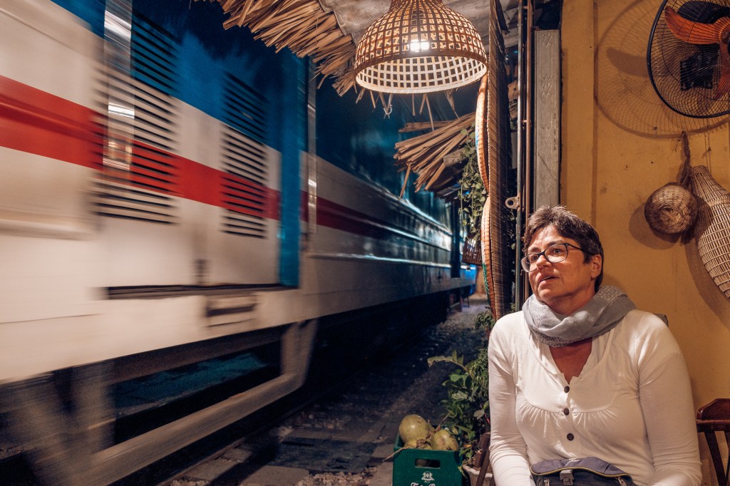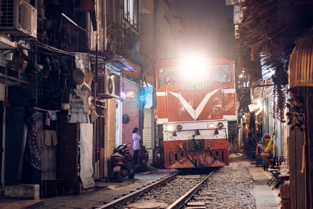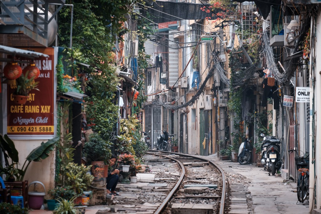 Aber – es gibt noch was anzusehen in Hanoi. Die Train Street bei uns ums Eck! Das ist so kurios! Die Häuser wurden immer näher an die Bahnstrecke gebaut… und wenn der Zug kommt, wird kurz alles weggeräumt. Der fährt wirklich total nah an einem vorbei, unglaublich.